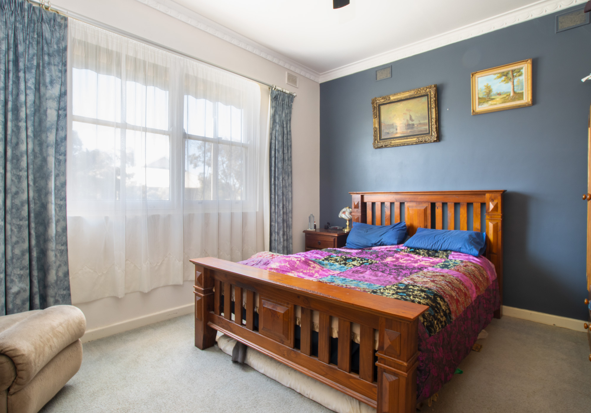 Two bedrooms located at the front of the home, generous in size, providing ceiling fans and conveniently have the main bathroom nestled in between.