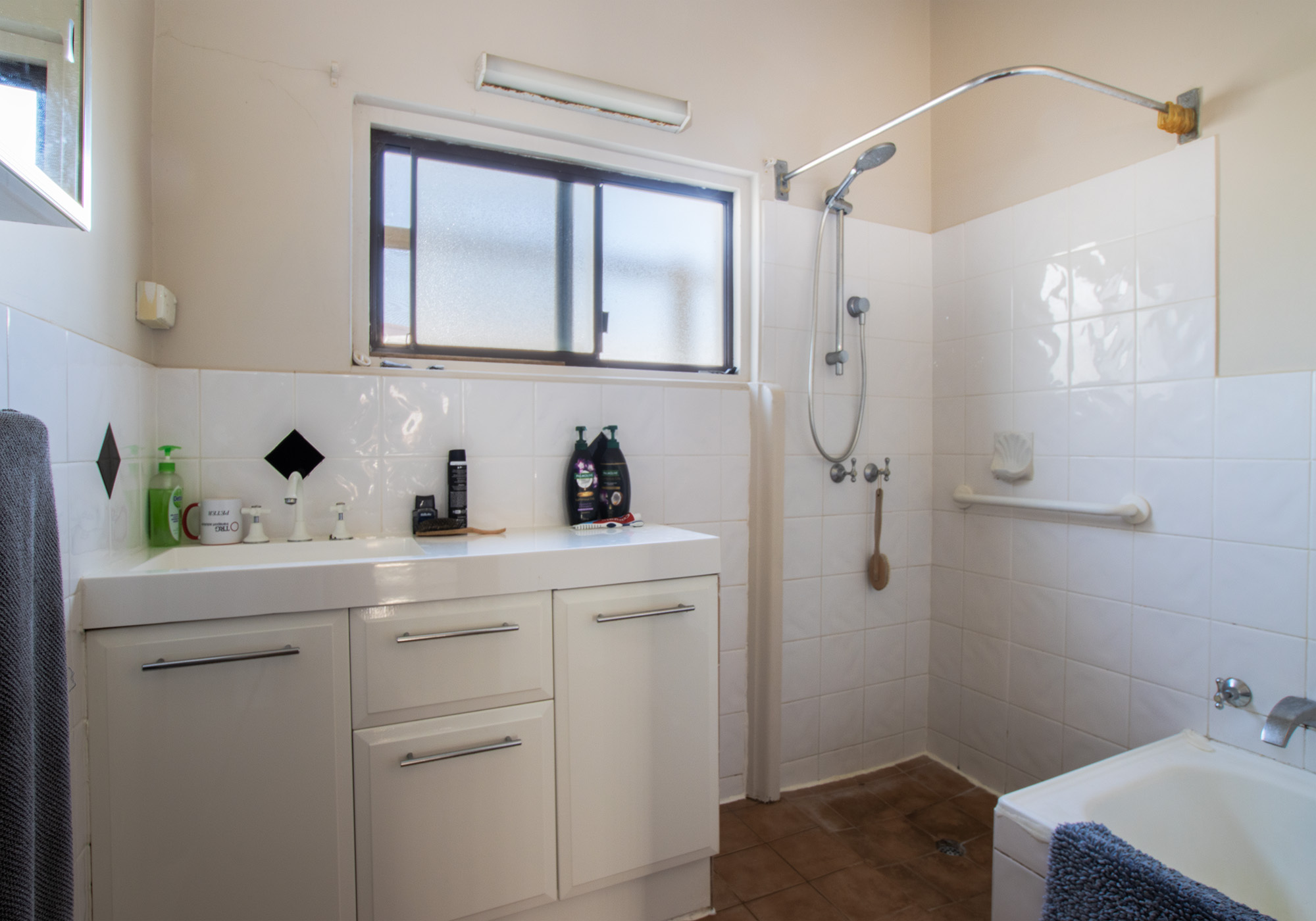 Main bathroom features bathtub, shower, and vanity. Separate w/c and laundry is found at the rear of the home.