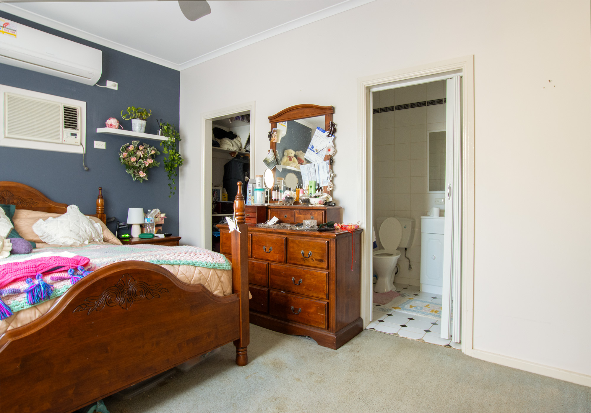Master bedroom at the rear of the home provides a haven away from the rest of the house and offers walk in robe, new split system air conditioner, ceiling fan and ensuite with shower, vanity and w/c.